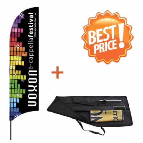 Kupnja uključuje jednu aluminijsku rastavljivu motku, elastičnu gornju motku od stakloplastike, kvalitetnu na vodenoj osnovi digitalno DYE tiskanu zastavu i modernu torbu za mobilnost Vaše solucije (jedna torba je za dva kompleta).